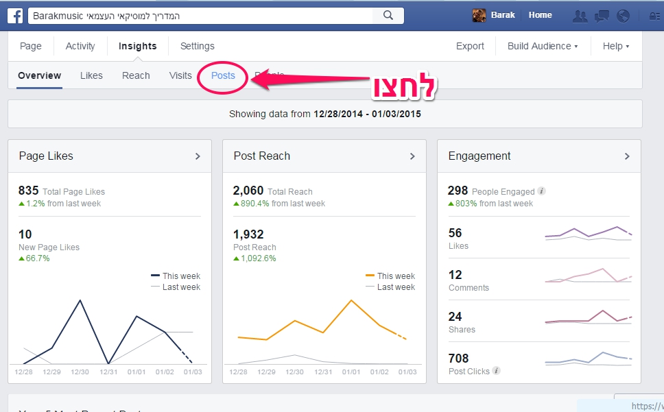 2.      לחצו על לשונית Posts בסרגל העליון